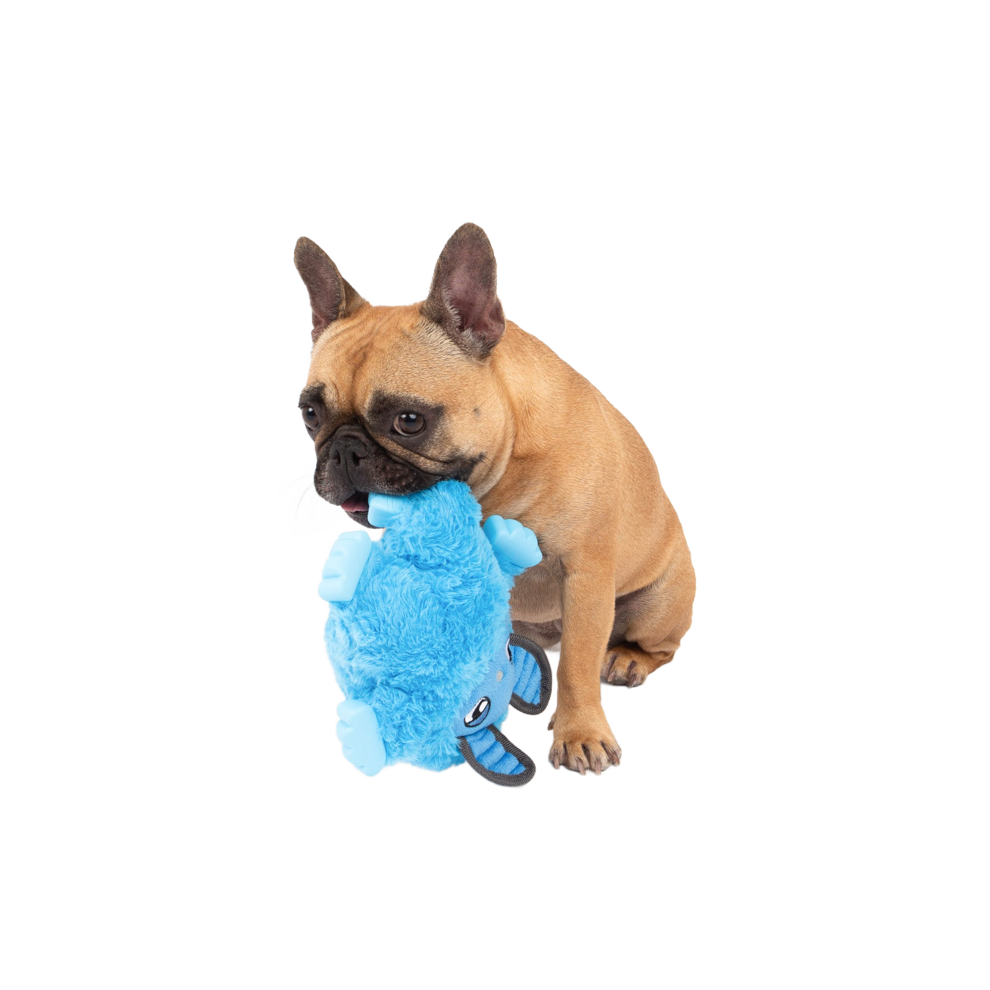 Delight your small dog with the Blue Troll Dog Toy from the Mythical Friends Line. Standing 8" tall, this plush companion features a soft, cuddly body paired with durable rubber feet shaped like hands. These feet provide a unique chewing texture that not only satisfies your pups urge to chew but also gently massage their gums in a flatter shape designed for easier biting. Built to withstand playful tugs and bites, this toy balances comfort and resilience, making it an ideal choice for both interactive games and solo play. Its whimsical design sparks your dogs imagination while engaging natural instincts, turning every moment into a magical adventure filled with fun and satisfaction. Perfectly sized for small dogs, this enchanting troll brings joyful companionship to your furry friends daily routine.