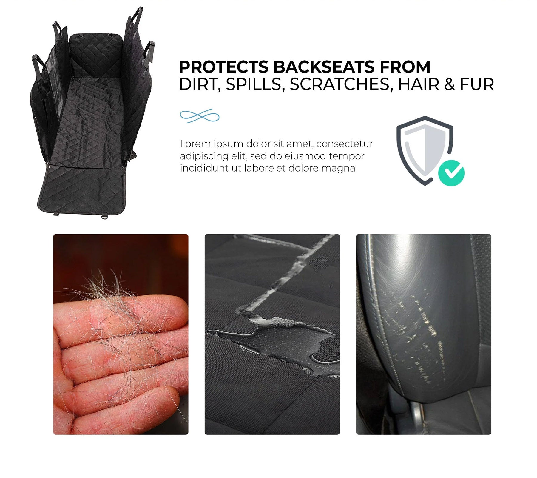 100% Waterproof & Stain-Proof Shields backseats from dirt, spills, fur & scratches