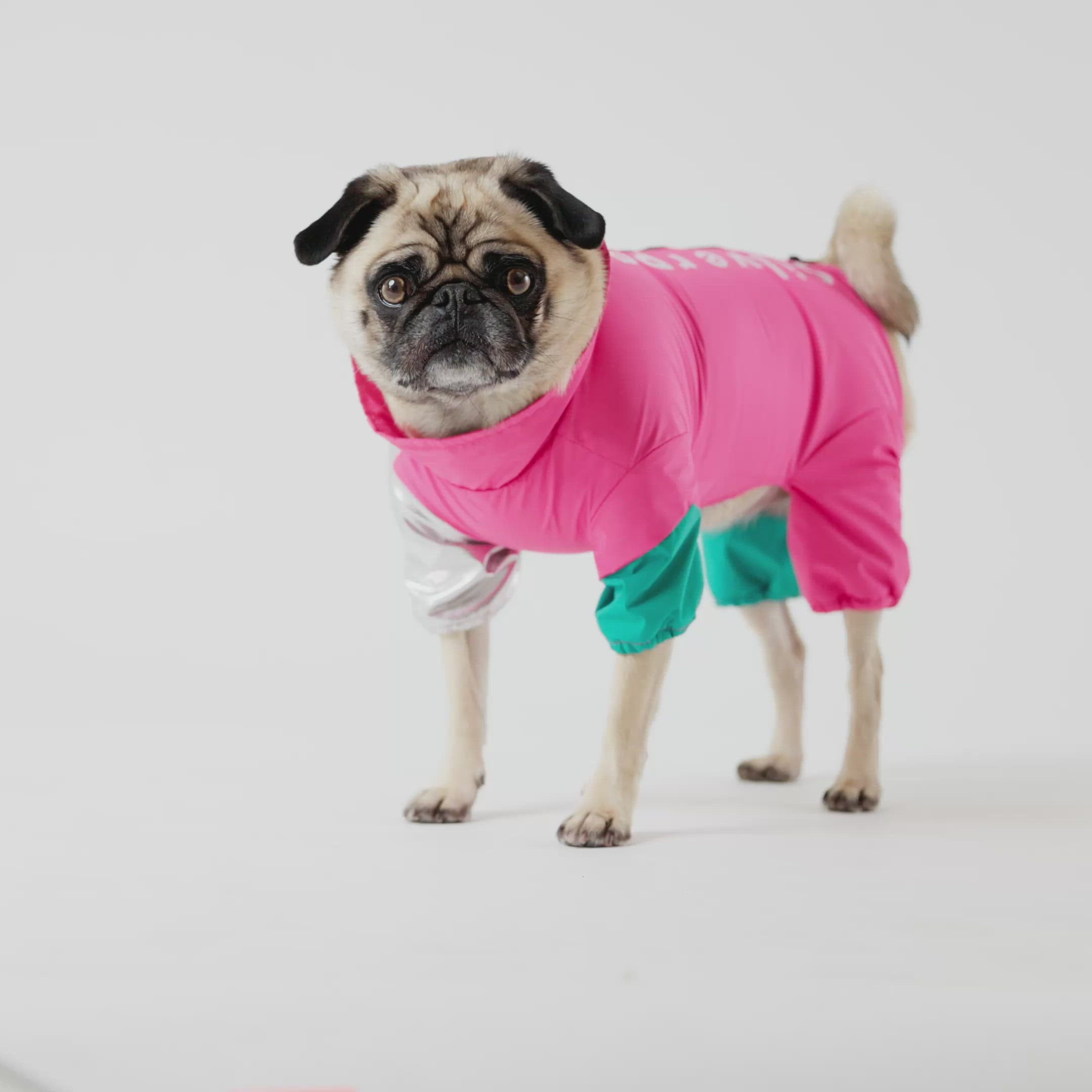 Ricki Dog Tracksuit Pink Waterproof One-Piece with Harness Access & Zipper Closure