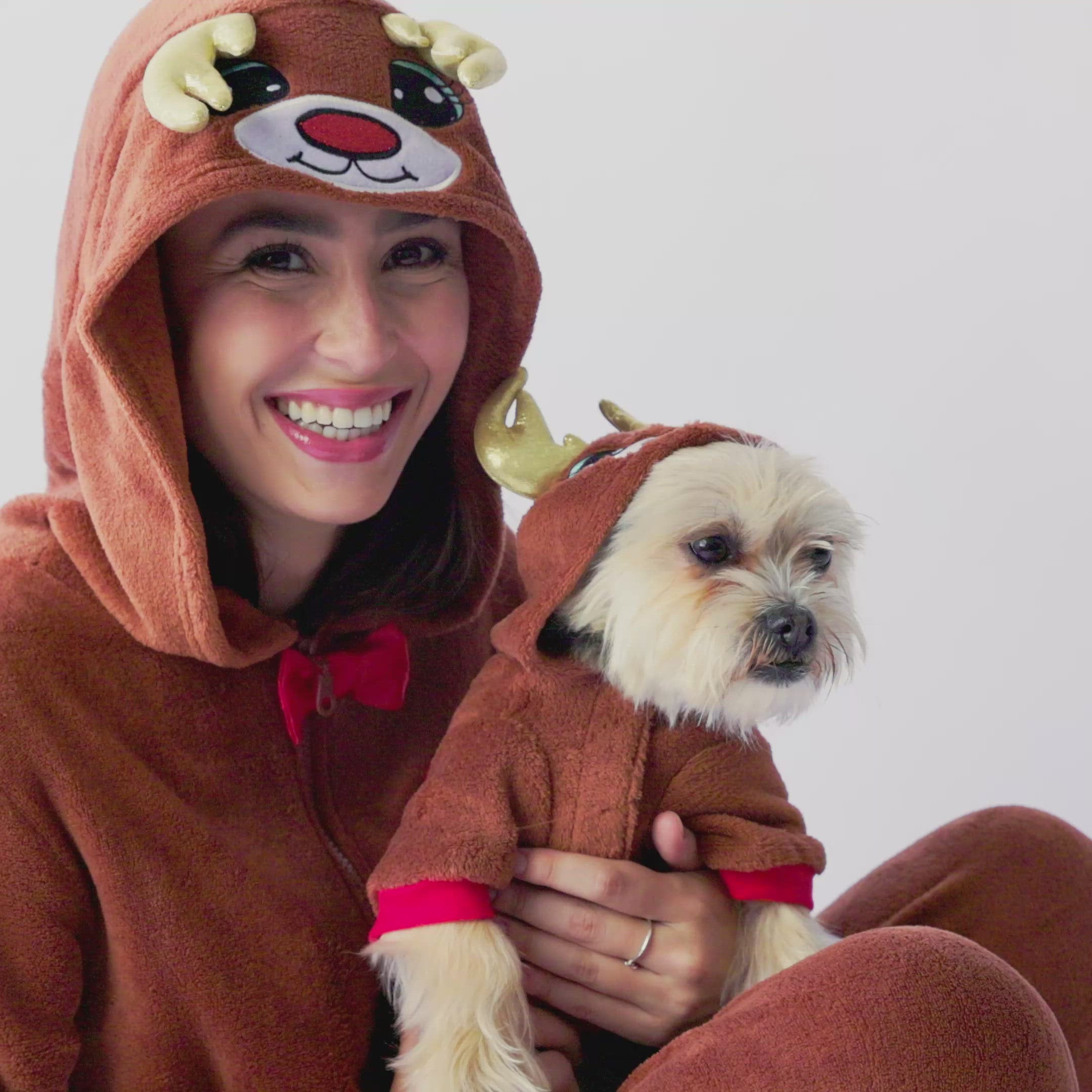 Matching Human Reindeer Onesie Cozy Holiday Pajamas with Festive Appliqu