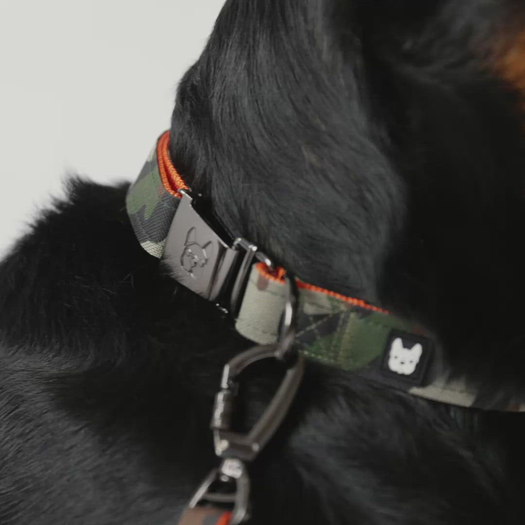 Built for control, comfort, and everyday adventures, the Camo Dog Leash combines durability with bold style. Made from premium printed polyester poplin and finished with neon webbing accents, this leash is designed for both city walks and outdoor exploration. Strong, reliable, and easy to handle, it’s an essential accessory for active dogs and confident pet parents.