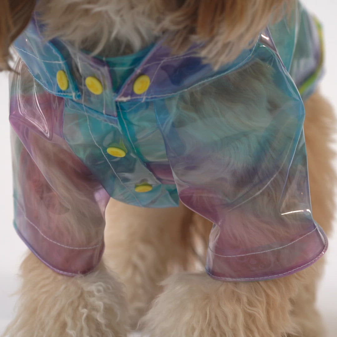 Kinney Dog Translucent Raincoat Waterproof Psychedelic Rain Jacket with Removable Hood & Leash Opening