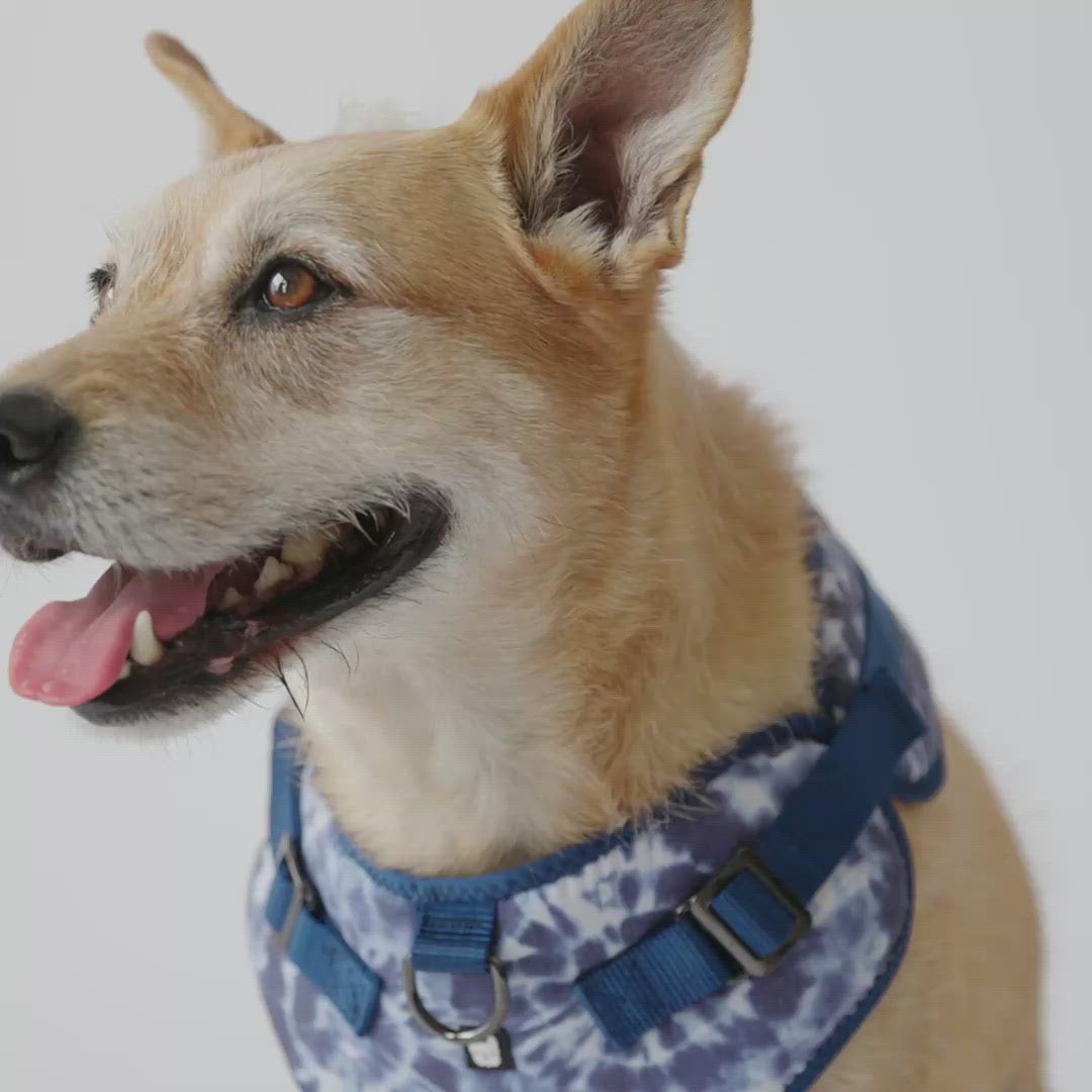 Blue Tie Dye Poplin Dog Harness Adjustable, Stylish & Comfortable