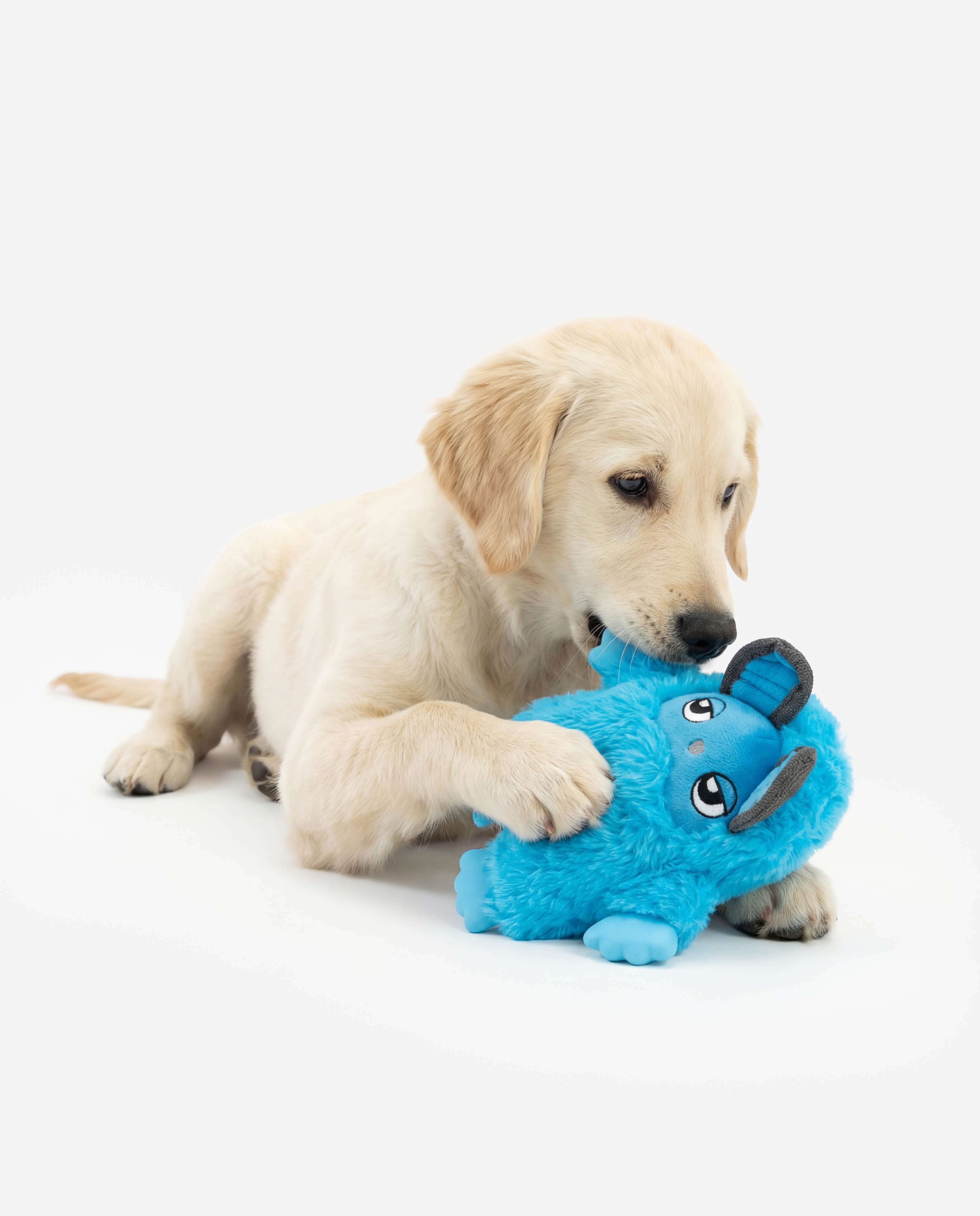 Faites plaisir à votre petit chien avec le jouet pour chien Mythical Friend bleu de la gamme Mythical Friends. Ce compagnon en peluche possède un corps doux et câlin ainsi que des pattes en caoutchouc résistant en forme de main, conçues pour satisfaire son instinct naturel de mastication. Le caoutchouc texturé masse délicatement les gencives tout en offrant une surface plus plane pour faciliter la prise en bouche.